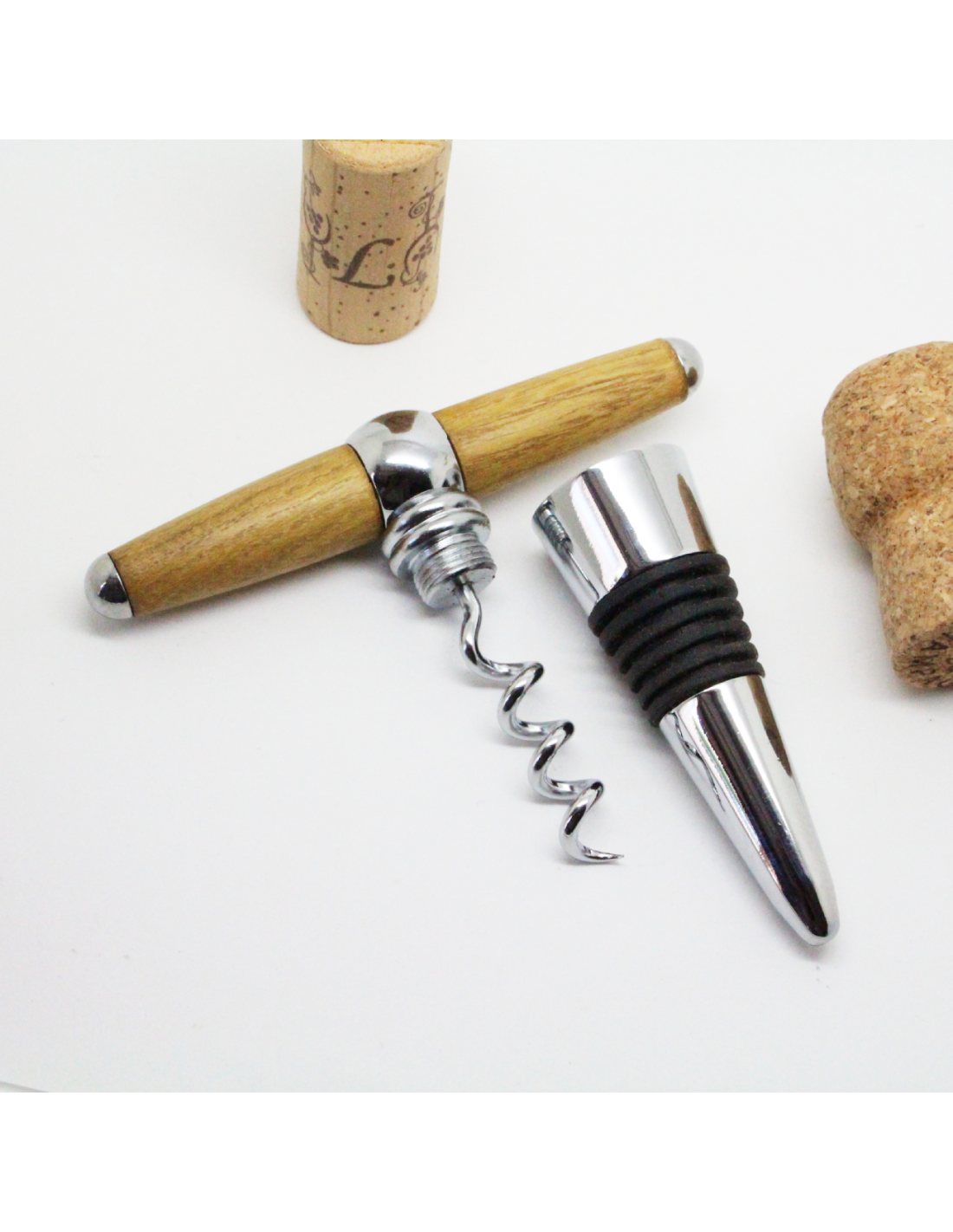 Notre modèle de bouchon tire-bouchon est un 2 en 1 très pratique et innovant. Il se compose d'un tire-bouchon qui se visse dans le bouchon de forme conique. Ce modèle se compose d'une partie en caoutchouc permettant ainsi de s'adapter à tous les goulots de bouteilles. Il sera apporter du style à vos bouteilles de vin ou de mousseux. Vous apprécierez le bois d'acacia dont les nuances varient du jaune-vert à brun doré. C'est un bois avec une forte résistance et une durabilité naturelle