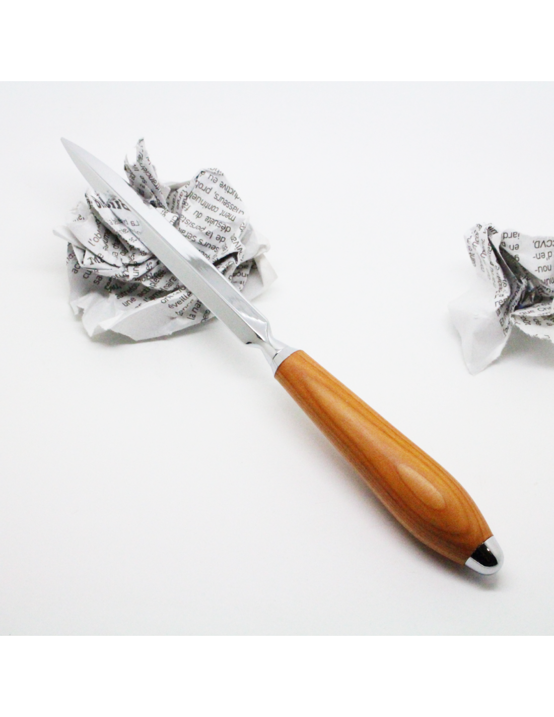 Un coupe papier unique, tourné à la main dans nos ateliers et en bois français. Cet accessoire est pratique et très utile pour ouvrir vos enveloppes et emballages postaux. Notre coupe papier affiche une ligne classique, d'une grande finesse, qui trouvera facilement sa place dans votre quotidien. Vous serez charmé par le bois d'if avec ses teintes qui varient du rouge orangé foncé au orange très clair et son veinage tortueux. Ce bois est aussi connu pour sa longévité.