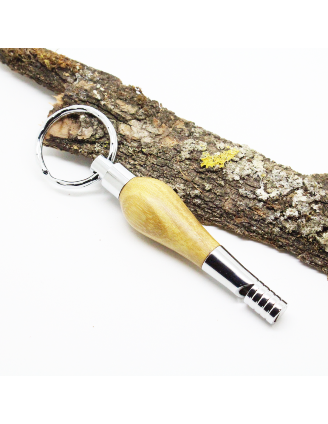Notre modèle de porte-clés sifflet est original et sera trouver sa place auprès des petits comme des grands. Il pourra s'avérer très utile pour signaler un besoin d'aide par exemple ou bien juste pour s'amuser. Le bois d'acacia est connu pour son beau motif de grain, de couleur jaune-vert avec de superbes reflets dorés. Ce bois est aussi apprécié pour son excellente résistance et sa longévité.