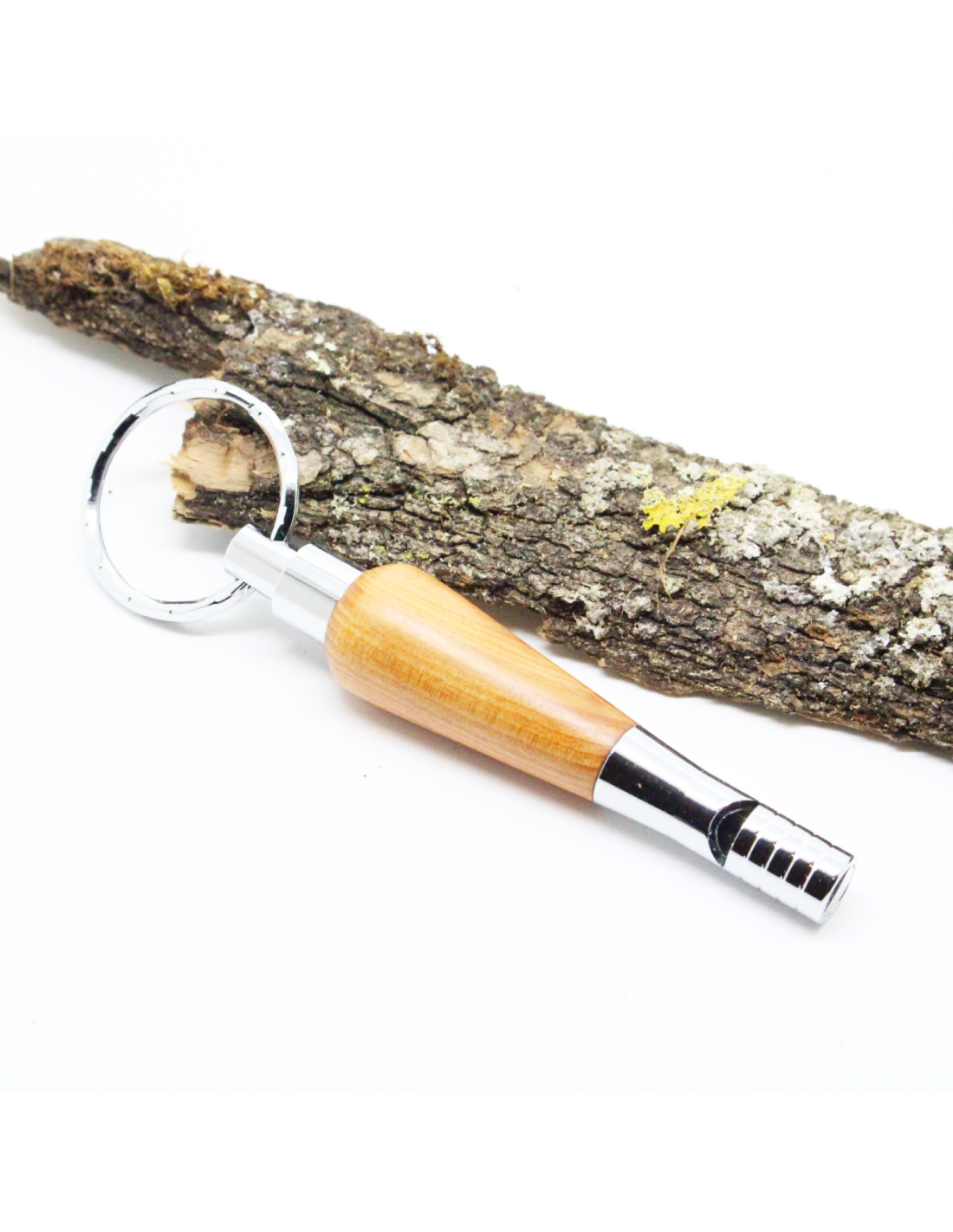 Notre modèle de porte-clés sifflet est original et sera trouver sa place auprès des petits comme des grands. Il pourra s'avérer très utile pour signaler un besoin d'aide par exemple ou bien juste pour s'amuser. Vous serez charmé par le bois d'if avec ses teintes qui varient du rouge orangé foncé au orange très clair et son veinage tortueux. Ce bois est aussi connu pour sa longévité
